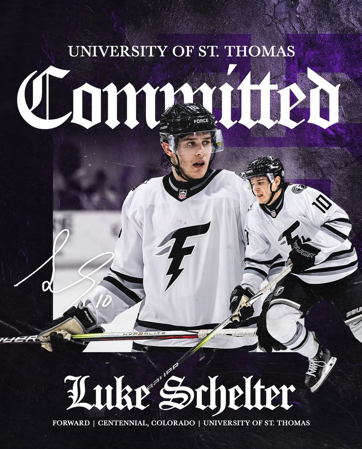 “I’m extremely excited and honored to announce my commitment to play Division 1 hockey at the University of St. Thomas,” said Schelter. “All glory to God, and a huge thank you to my family, friends, and coaches for their support along the way.”