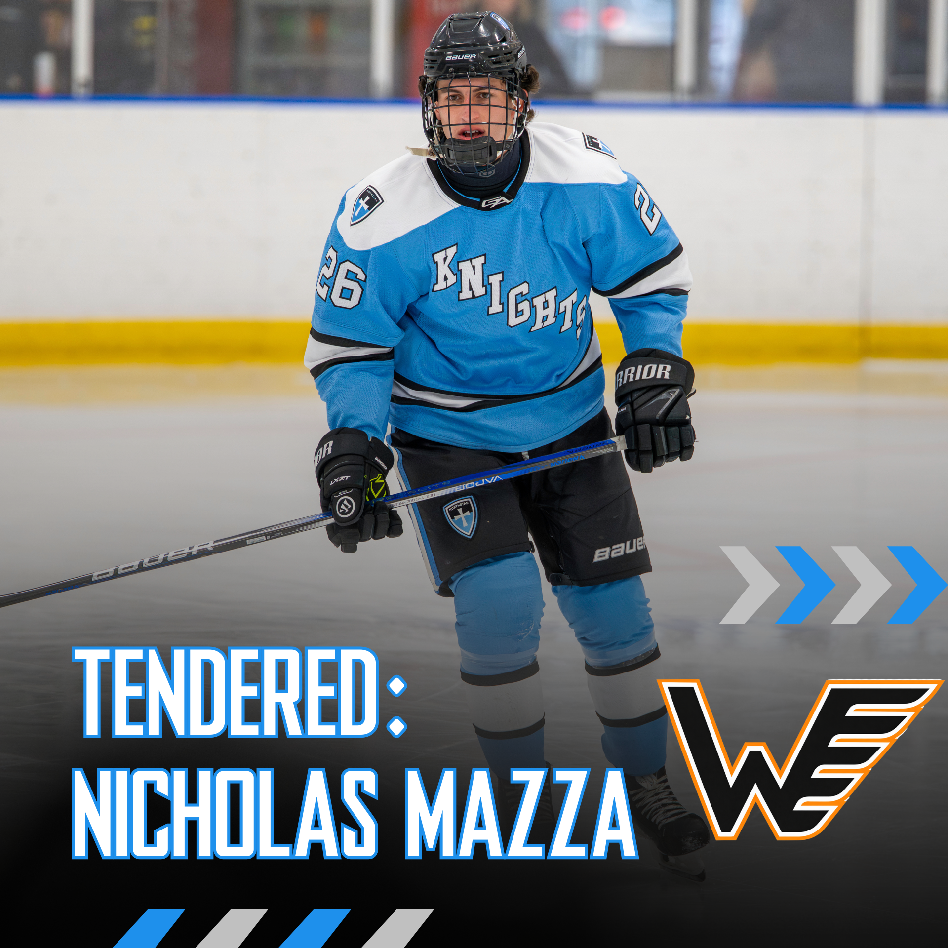 The NorthStar Knights are excited to share that defenseman Nicholas Mazza has tendered with the Winkler Flyers of the Manitoba Junior Hockey League. Mazza, a 5-foot-10, 170-pound right-shot defenseman from Woodbridge, Virginia, joined the Knights ahead of the 2025–26 season and has made an immediate impact on the 18U Prep blue line.